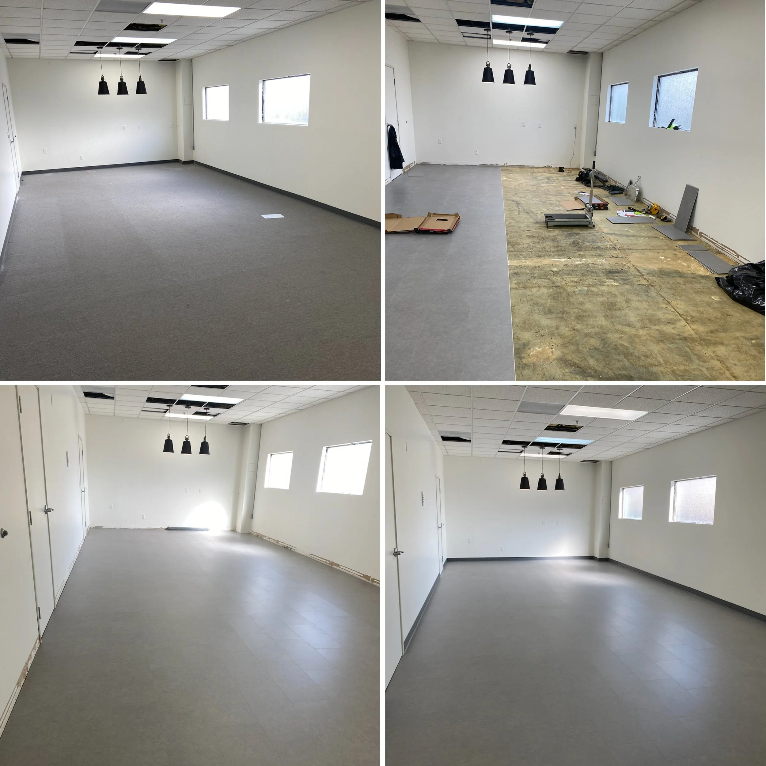 We removed the existing carpet to install new hardwood while salvaging the original baseboard. We then removed the old ceiling tiles and installed new ones. We painted the walls and doors, installed a new TV and renovated the old windows by framing and painting new interior frames so that the existing windows could be saved. The final touch was installing a new accent wall.